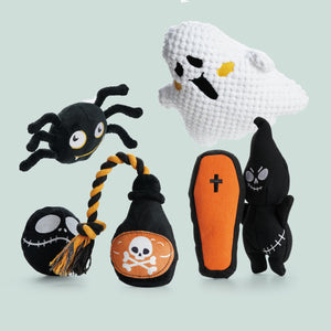 - This halloween dog toy is a funny theme design, including little ghosts, spiders, coffins, skull bombs, etc., which is more in line with the festive atmosphere, and brings your own dog to experience a different experience.
