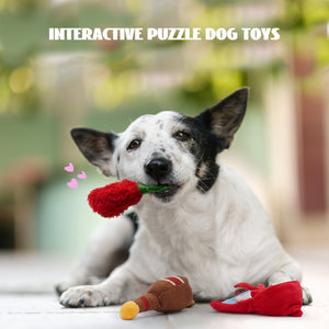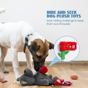 - Includes six fairy tale-themed small dog toys from the Little Red Riding Hood story, each puppy toy featuring unique elements like crinkle, squeaky, and hide and seek, all stored within one large dog toy.