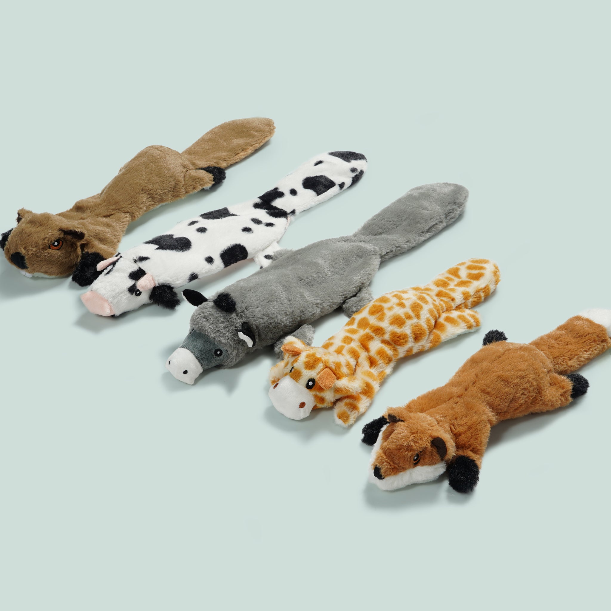 5点セットの「クリンクル ドッグ スクイーキー トイ」は、二重構造の補強生地で作られた丈夫で長持ちするおもちゃです。詰め物のないこのぬいぐるみは、あらゆるサイズの犬にぴったりで、クリンクル音とキーキー音が鳴って、楽しく遊べます。