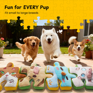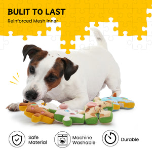 - The large puzzle suits big dogs, while smaller single pieces are perfect for medium and small breeds. Made with durable, soft cotton for safe, long-lasting play.