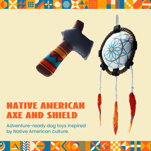 - この6点セットの犬用おもちゃコレクションには、斧と盾、ティピーとカヌー、そして雄牛の頭蓋骨があしらわれたトーテムポールが含まれています。それぞれのおもちゃはネイティブアメリカンの文化にインスピレーションを得ており、ペットの遊びに冒険心を刺激するのに最適です。