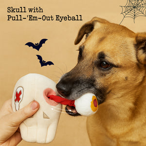 • The skull dog toy with wobbly, pop-out eye, perfectly caters to your dog's natural urges to tug and “destroy” their prey, making it an excellent enrichment squeaky dog toy for high-energy pups.