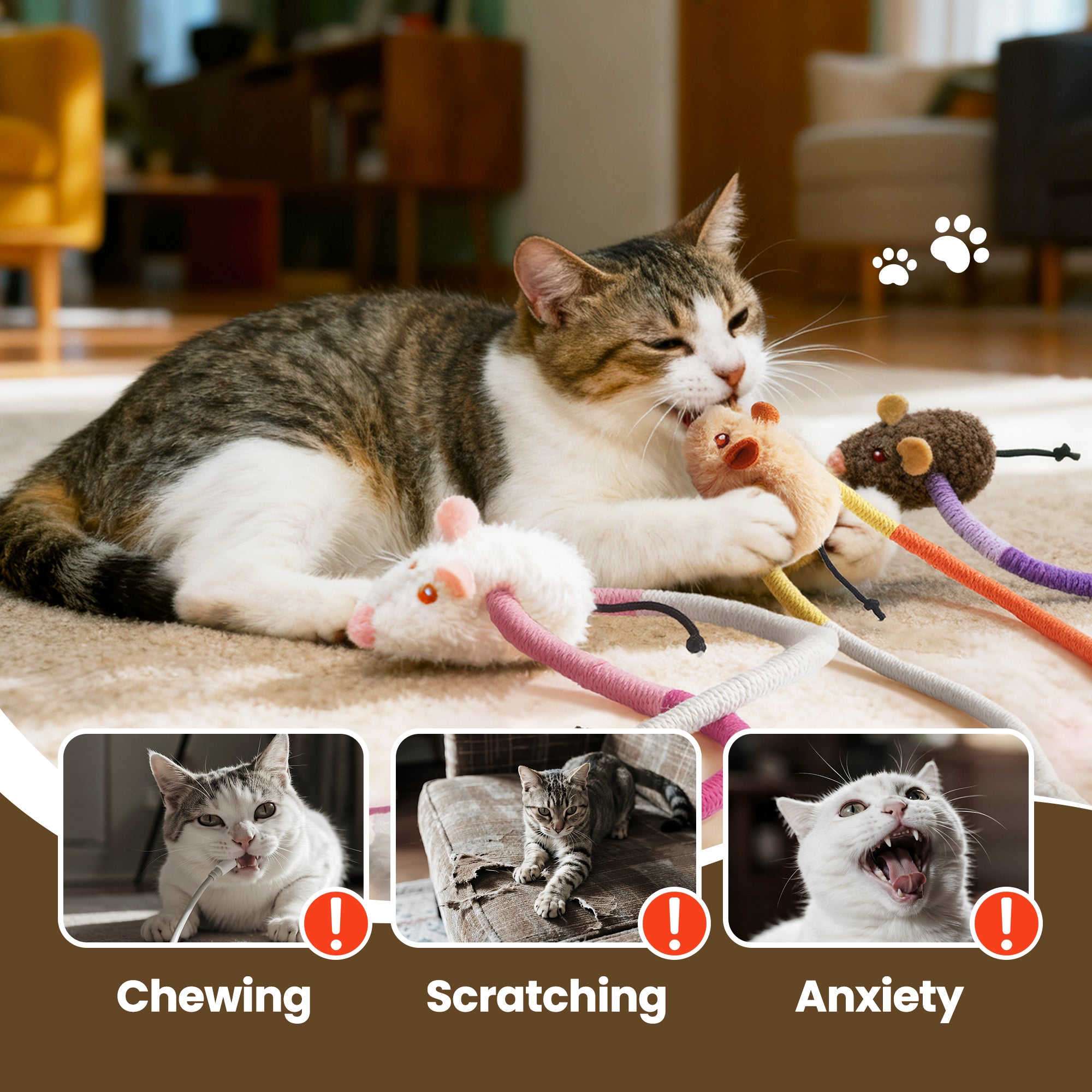 - 3-in-1 Design for Versatile Fun - Combine catnip mice and chew ropes in one set!