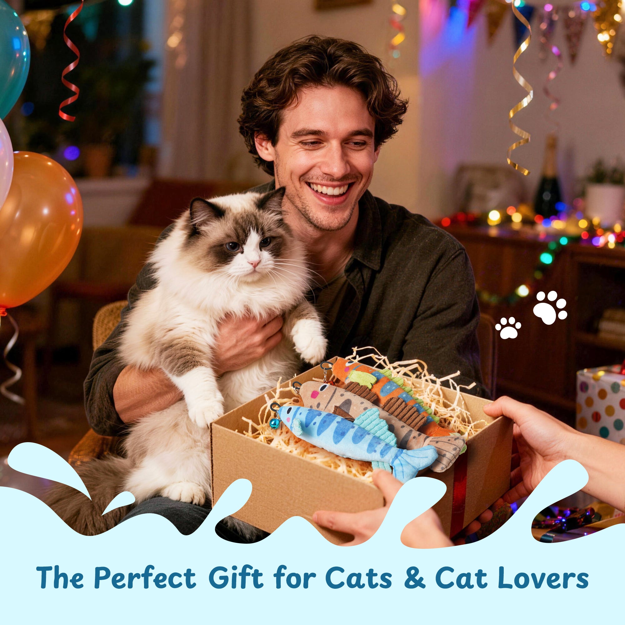 - Made with soft, durable material that’s perfect for chewing, these fish toys are ideal for kittens and adult cats alike. The bite-resistant surface is gentle on their teeth and gums, helping to alleviate teething discomfort while providing hours of safe play. Designed to last through all of your cat’s chewing, kicking, and pawing.