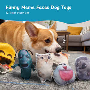 12 Pack Animal Memes Plush Squeaky Dog Toys