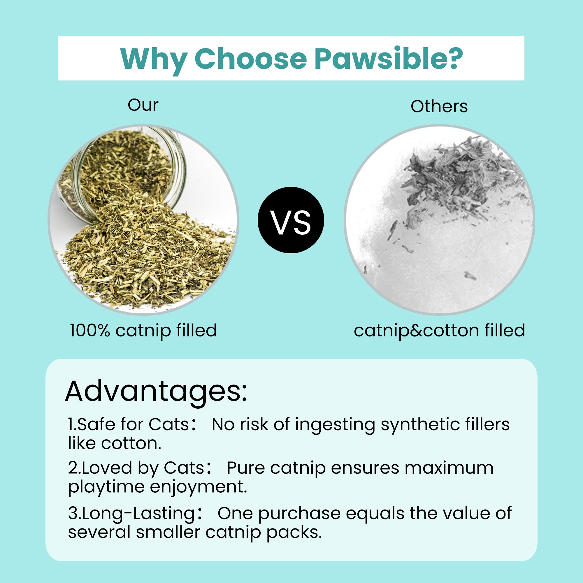 • Crafted with your cat’s safety in mind, these durable toys are soft, non-toxic, and built to withstand the roughest play.