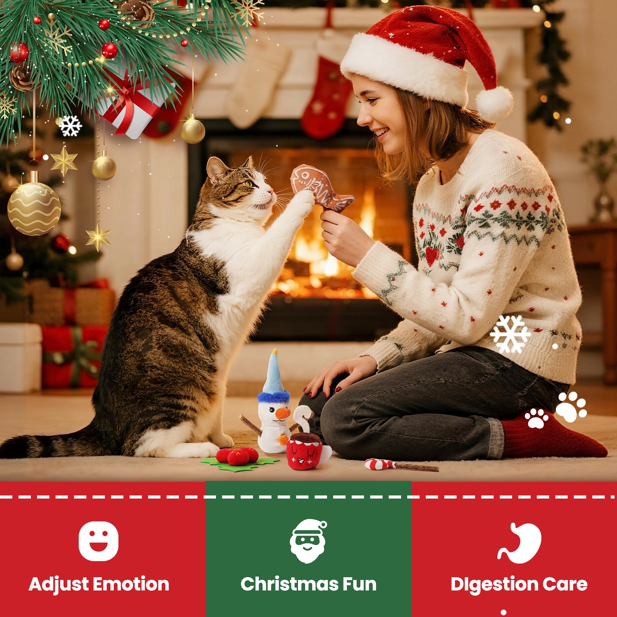 • This PURETOY set includes 5 charming Christmas-themed cat toys: a snowman, gingerbread fish, candy cane, coffee cup, and holly berry. Perfect as Cat Christmas Gifts, each unique design sparks your cat’s curiosity and festive joy, making it a top pick for Christmas Cat Toys.