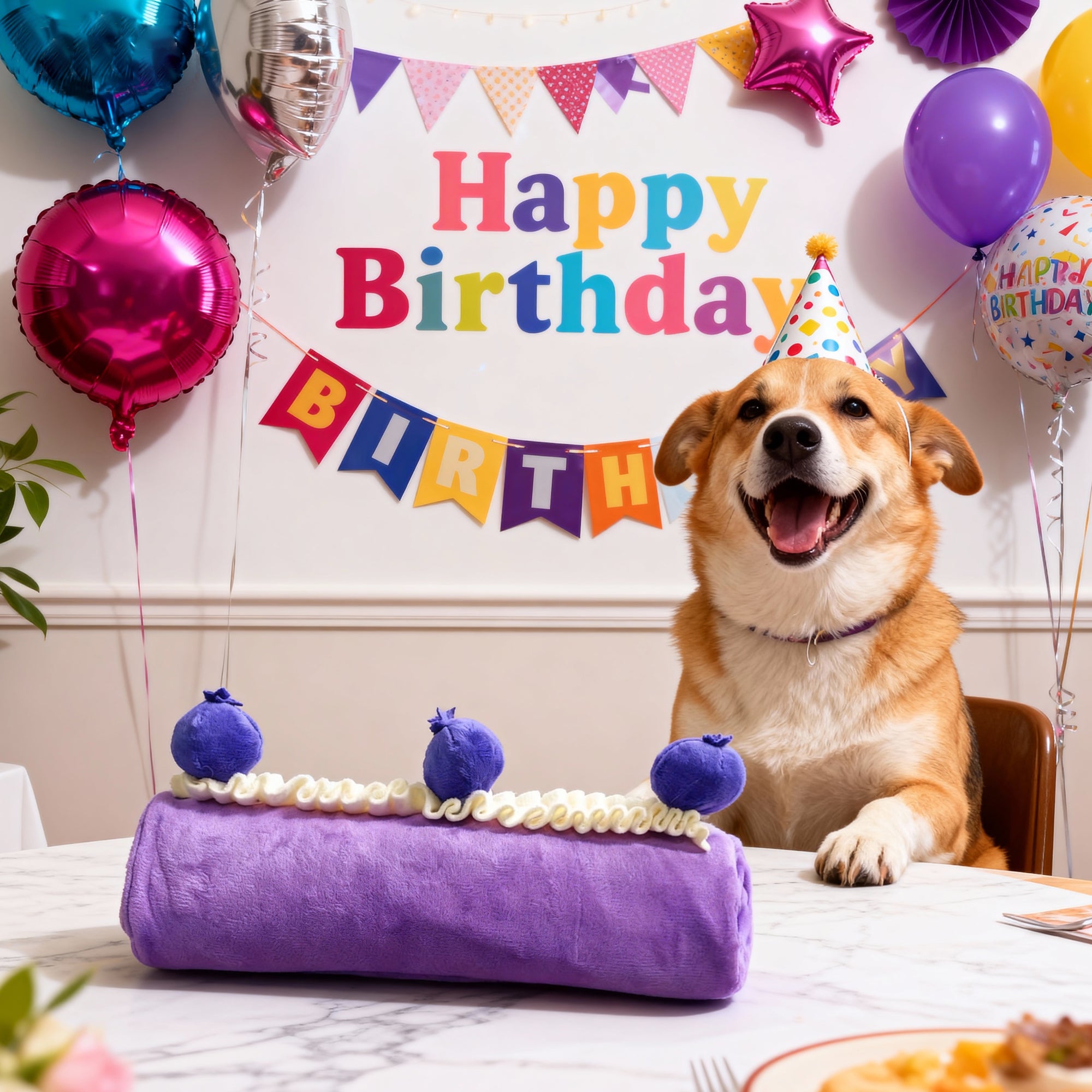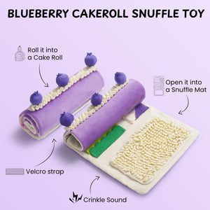 • Wrap it into a cute blueberry roll cake using the secure Velcro strap – perfect as a dog birthday toy! Unwrap it and it becomes a flat sniffing mat, ready for fun. It's a beautiful and functional dog birthday cake centerpiece that turns into hours of brain games.