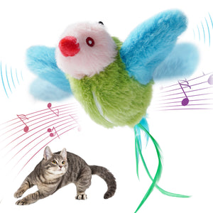 - Engages your cat's natural hunting instincts with lifelike flapping wings and exciting chirping sounds triggered by touch. Keeps indoor cats active and mentally stimulated, providing hours of interactive fun.