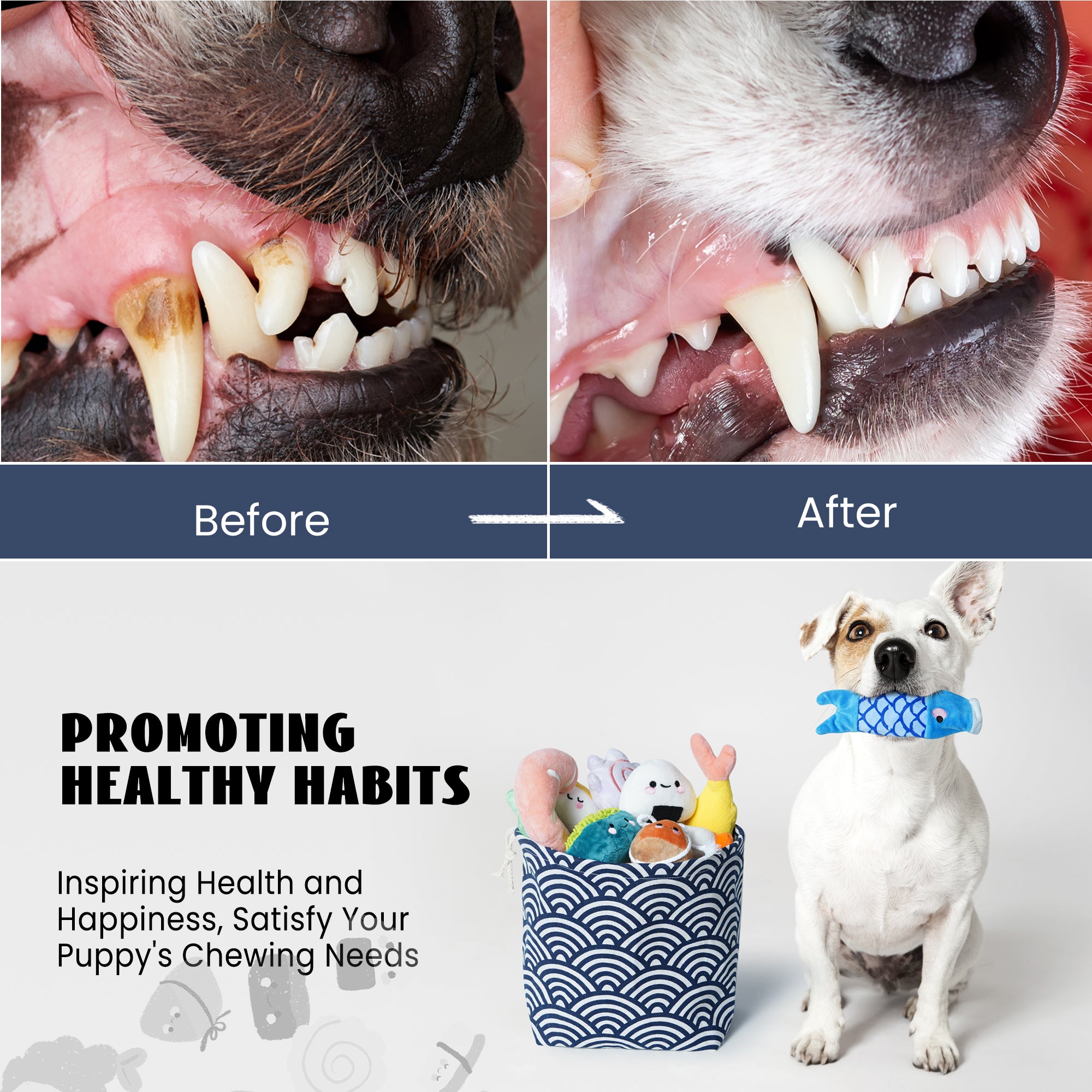 - Each toy has a squeaker, allowing your puppy to make attractive sounds when biting the toy.