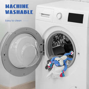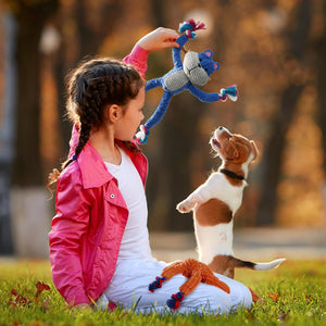 - Engage in a spirited game of tug-of-war with your furry companion using this interactive toy featuring long limbs and floppy ears. Crafted specifically for playful pups, this toy boasts a durable rope embedded within its design. Even in the event that your dog manages to tear apart the toys, they will still have a rope toy to play with.