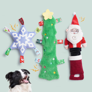 Tug-of-war Santa Claus, safe no stuffing Christmas trees, flying snowflakes, this set of toys designed for Christmas offers a variety of ways to play, each with its own unique design that will bring smiles and fun to your furry friends.