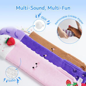 - This toy is more than a cute decoration, the built-in squeaker and crinkle-paper will keep your dogs engaged for hours!