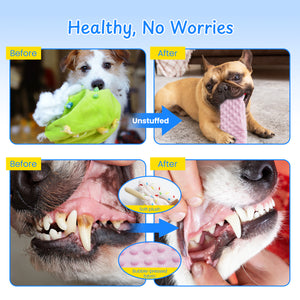 - No-Stuffing, no need to worry about your dogs swallowing cotton. Covered with fine plush and bubble-pressed fabric, this toy helps with cleaning teeth and gums.