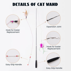 - Our cat wand toys support a variety of ways to play, such as ground dragging, air swinging, and hidden and found games. The bell ball attracts the cat's attention through sound, while the elastic mesh stimulates the cat's curiosity through touch.